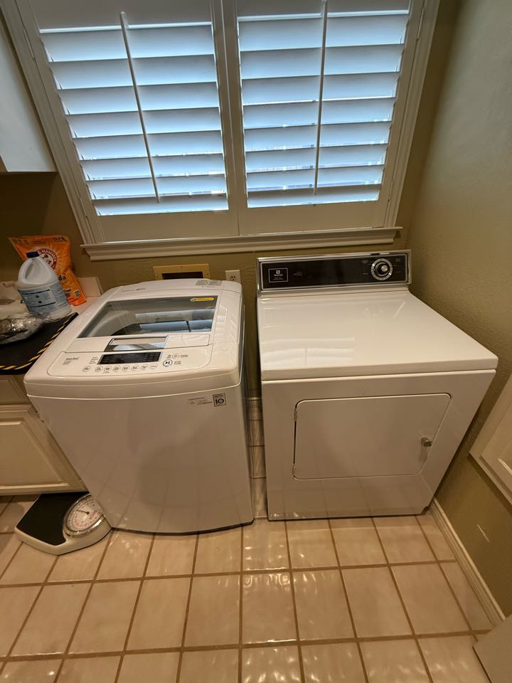 Washer was leaking from water hoses. Someone came out and adjusted it but now hot is cold and cold as hot. I looked at the washer and determined that the hoses were on backwards so I switched them now they are on the right and there’s no leak leaking. I also cleaned the dryer vent and switched the dryer door. I looked at the oven and determined that they need to have the electrician move the outlet for the oven to go further back and I also balanced out the refrigerator