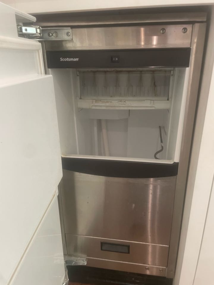 Working on the Hishazaki ice maker is leaking water under the sink. Upon arrival diagnosis found the pump defective. Removed the pump and installed a new drain pump. Checked and tested unit runs ok.