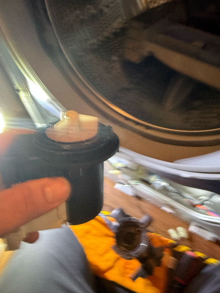 Whirlpool front load washer is filling back up with water when the cycle is not in use. The water inlet valve inside of the washer is failing and letting water drip in. The door seal is also mildewy so I would recommend for that to be replaced. Customer has decided to think about the repair.