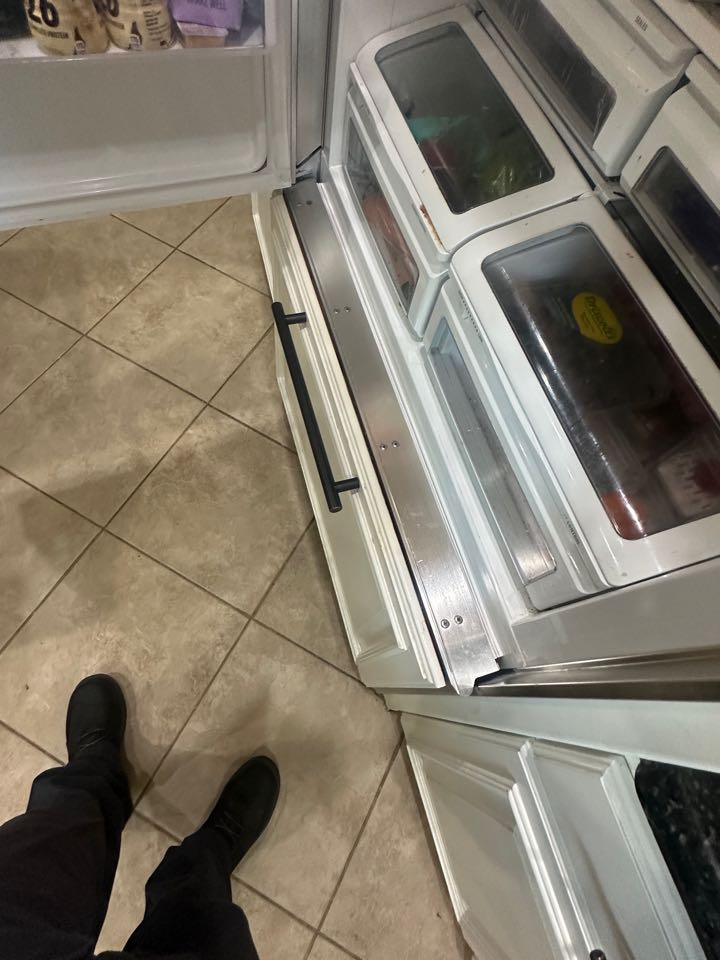 Working on a GE build in French door refrigerator. The freezer door gasket not sealing properly. Trying a new seal.