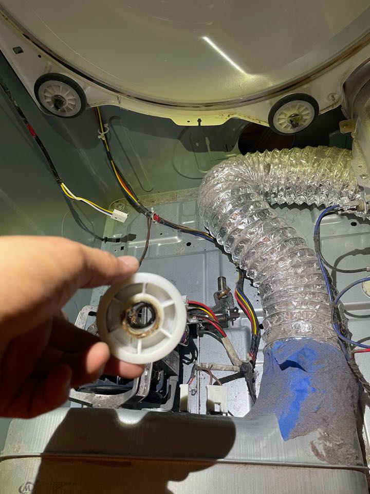I was called to a customer's home to repair a Whirlpool dryer. The customer had dropped a pod cap down the lint chute. I opened up the back of the dryer and removed the cap along with a wrench I found as well. I tested the dryer and everything is working as intended.