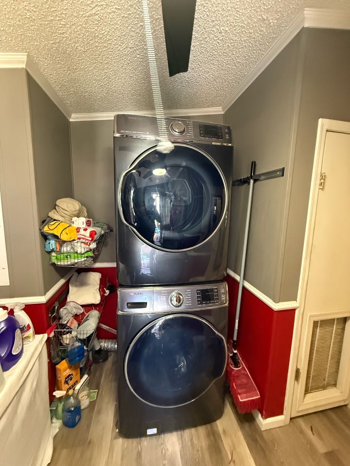 Samsung dryer. The dryer was staying on after the cycle was complete and showing a box made of dashes on the display with a blinking wrinkle prevent light on. The lint filter would not go all the way down. I explained to the customer that the wrinkle prevent option was on, which would keep the dryer tumbling without heat for a certain amount of time to avoid wrinkles in the clothing. I showed the customer how to turn it off so it would not do that anymore. A part of the lint filter had broken off due to wear and tear and jammed itself in the lint chute. This caused the lint filter to stick out and prevented the door from closing. I opened up the dryer and removed the broken piece along with cleaning out the lint chute of caked up lint. The filter now goes down all the way.