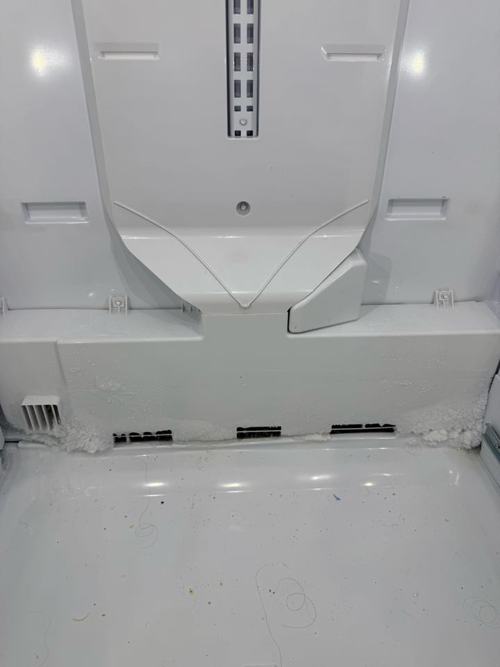 Working on a Frigidaire SXS nó cooling properly. Upon arrival diagnosis found water leaking over the fan and defrost terminator. De ice unit fixed the leaks and maintenance unit unit now runs ok