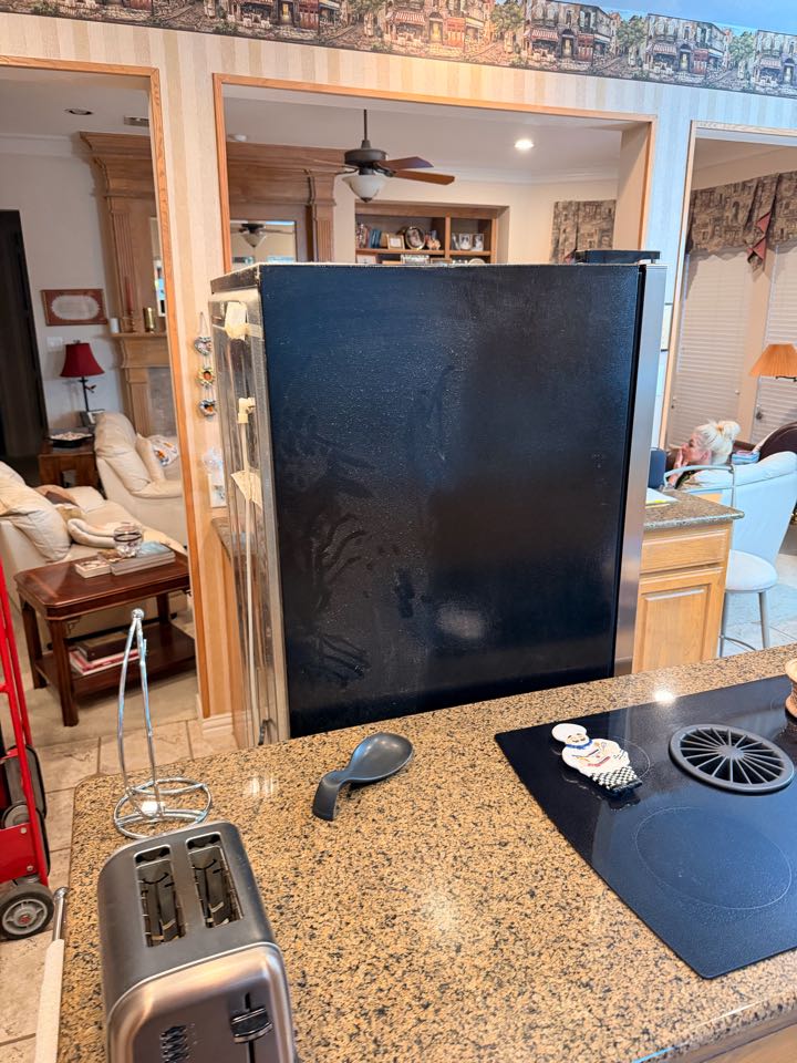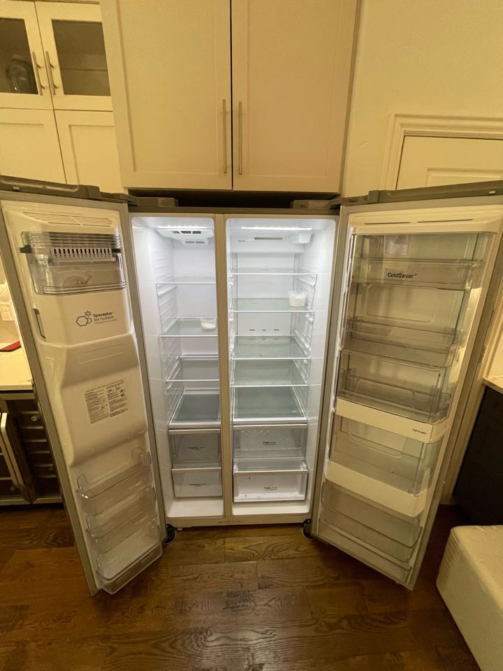 Customers fridge was leaking water everytime you asked the dispenser for water. After further diagnose it comes to be that unit is getting too hot and melting a water line. Will need a compressor replacement so Customer decided to go with a new fridge. We offered are Customer a fridge that we have back at the shop with warranty and install. Customer agreed and we hauled the old unit away