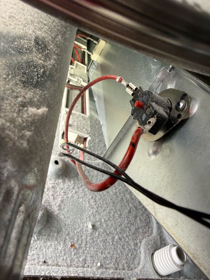 I was called to a home to repair a Bosch dryer that was not producing heat. Upon inspection, I found that the hi limit thermostat had tripped due to potential overheating. I reset the thermostat and tested the dryer, and it was heating properly. The common cause of this issue is that the dryer exhaust duct that goes outside is packed with lint.