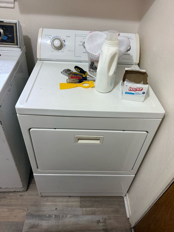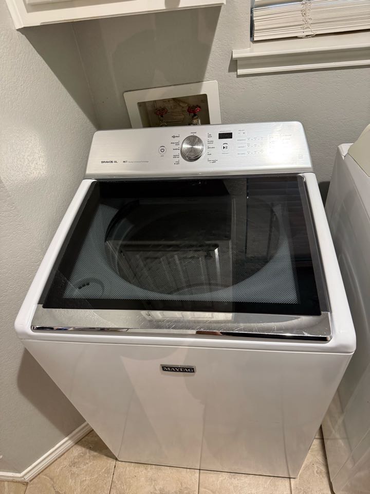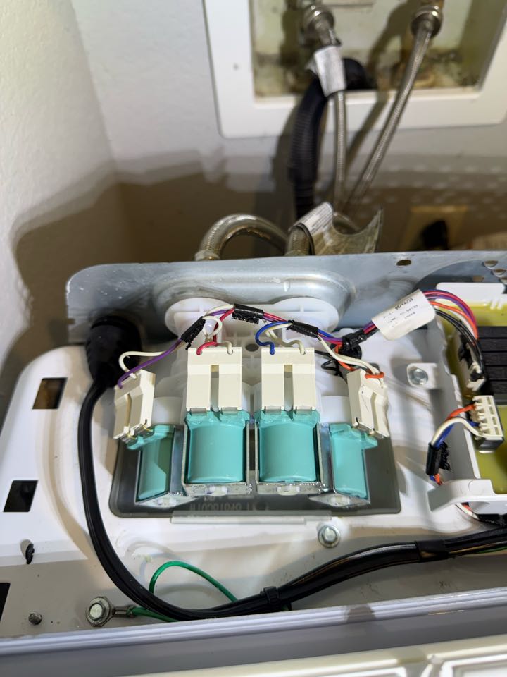 Samsung Flex Washer that was not working properly. Upon arrival, I found that the door handle was broken off due to the husband attempting to open the lid. I tried to turn the washer on, but there was no display. I also noticed that the bottom washer had left water in the tub and did not finish the cycle. I attempted to turn that one on, but the same chime and no display happened. The next step will be to replace the UI boards and main control board.
