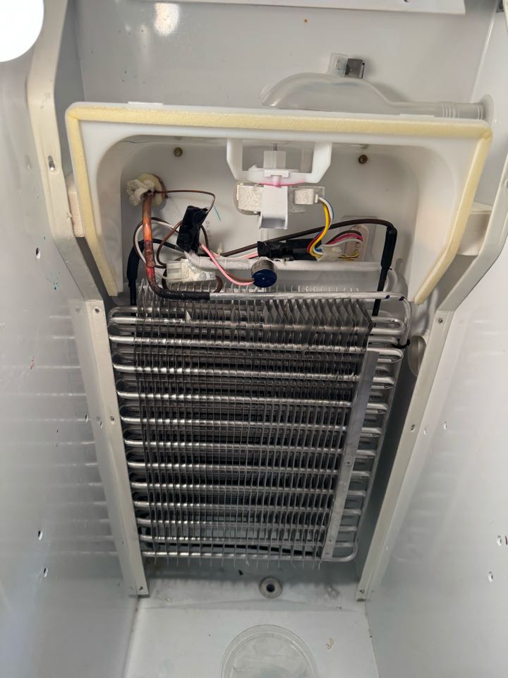 Was called on a built-in KitchenAid refrigerator that was not cooling in the freezer section. Upon further diagnosis, determined that the heating element shorted to the evaporator, causing a low side leak. Customer allowed us to rebuild the low side which included compressor,filter drier,inverter board and evaporator. We did perform a flush with Rx11 on the high pressure side. Unit is now in working order.