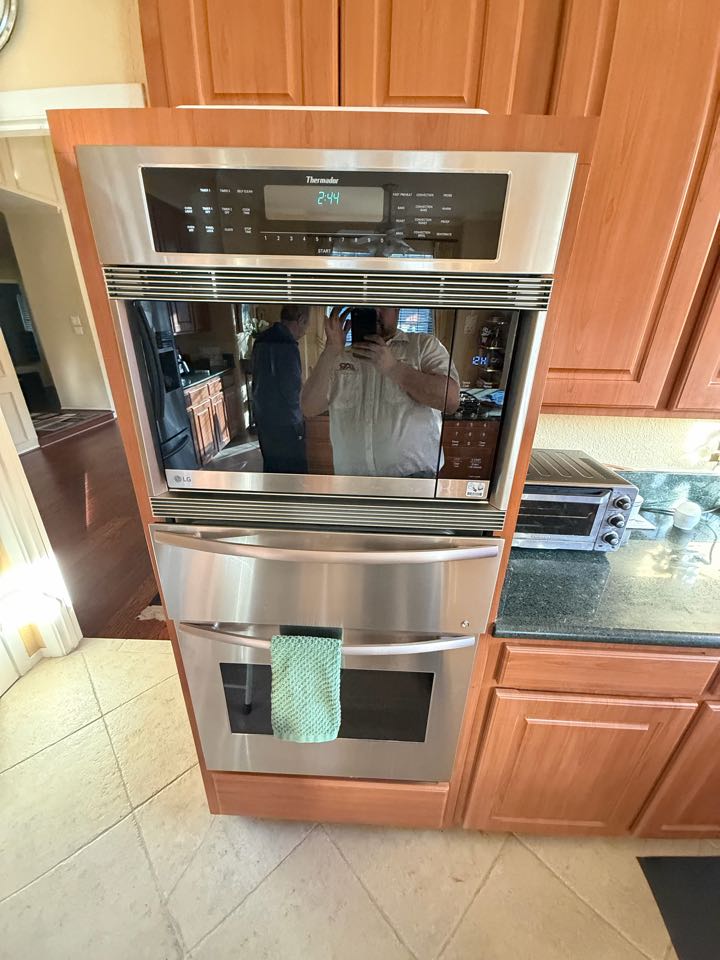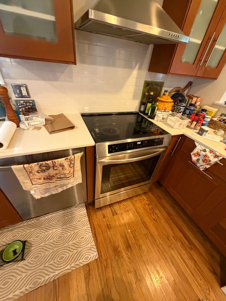 Washer was leaking from water hoses. Someone came out and adjusted it but now hot is cold and cold as hot. I looked at the washer and determined that the hoses were on backwards so I switched them now they are on the right and there’s no leak leaking. I also cleaned the dryer vent and switched the dryer door. I looked at the oven and determined that they need to have the electrician move the outlet for the oven to go further back and I also balanced out the refrigerator