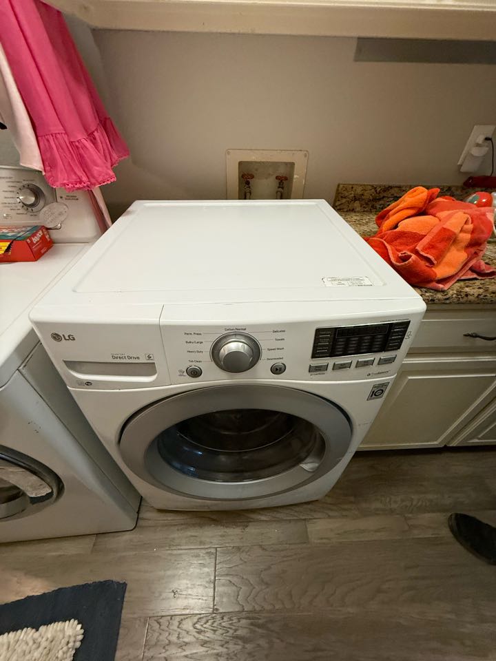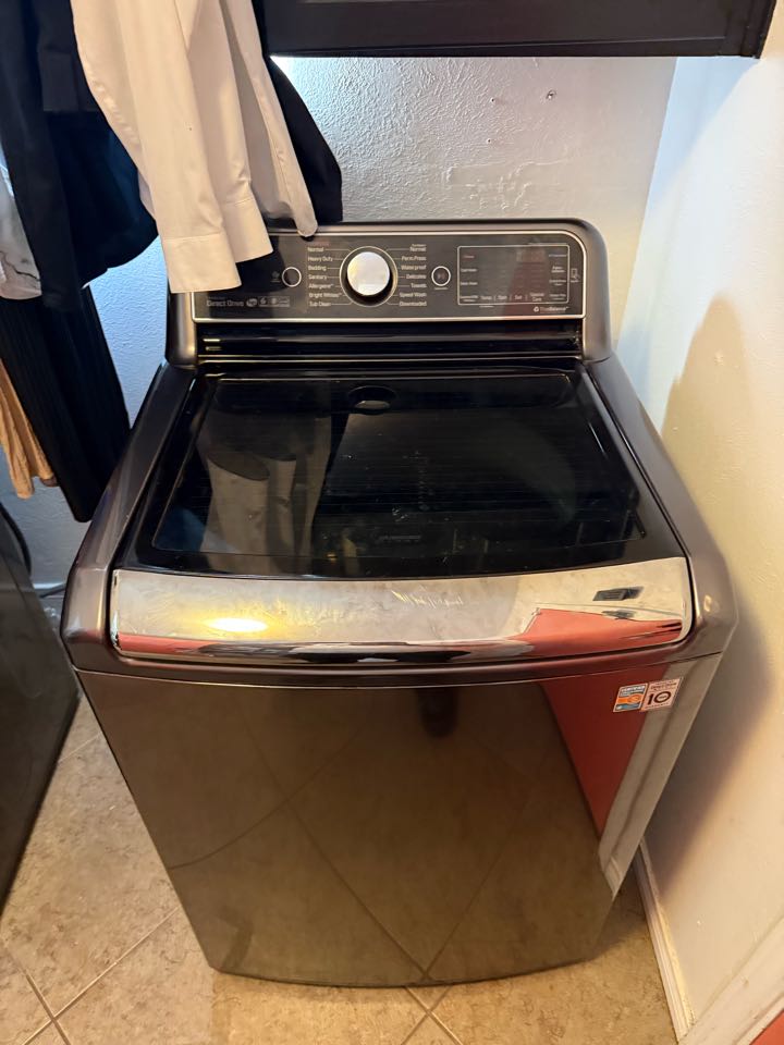 LG Top Load Washer leaked water on the floor. After checking the washer multiple times, I could not find any issues. I advised the homeowner to keep an eye on the washer and if the issue persists, to check the back of the washer where the washer drains in to the pluming standpipe and see if it is wet around there. If it is, that would indicate it is backed up and overflowing from the standpipe and will need to be cleaned by a plumber.